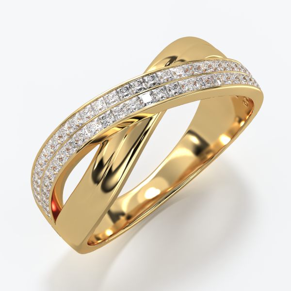 Band ring crafted in 18KT gold with Princess-cut natural diamonds of color DEF and clarity VVS, total carat weight 1.50 CT.