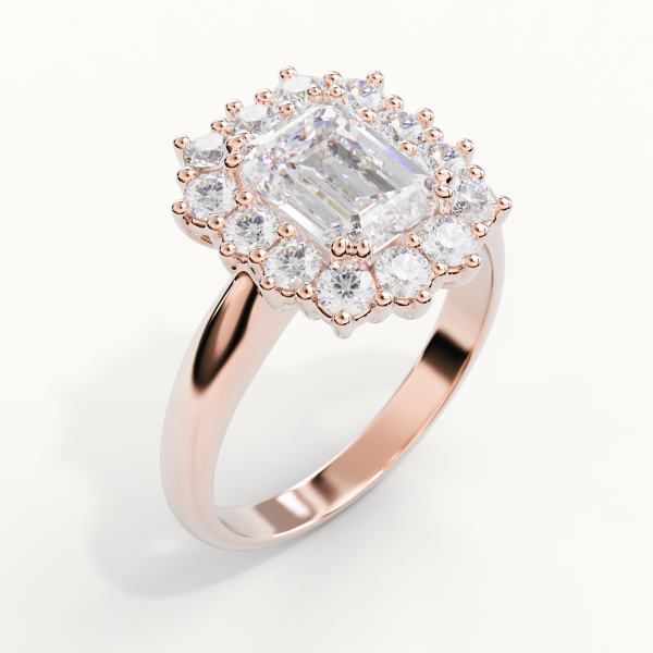 Solitaire ring crafted in 18KT gold, featuring a certified GIA 0.70 CT natural Emerald Cut diamond, color F, clarity VS1, surrounded by natural diamonds of color DEF and clarity VS, totalling 0.30 CT. Total carat weight of natural diamonds: 1.00 CT. Ring weight approximately 3.5GR (Depends on the Size).