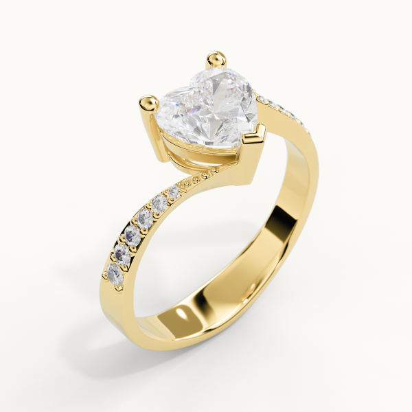 Solitaire ring crafted in 18KT gold, featuring a GIA-certified central Heart-cut Natural Diamond of 0.50 CT, Color F, Clarity VS1, surrounded by natural diamonds of Color DEF and Clarity VS, totaling 0.06 CT. Total carat weight of Natural Diamonds: 0.56 CT. Ring weight: approximately 4GR (varies by size).