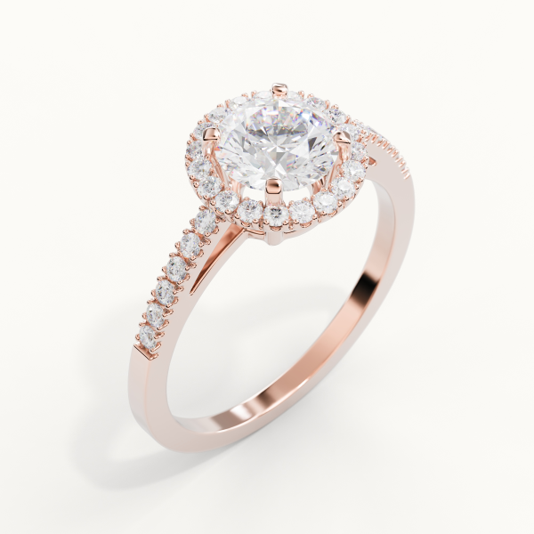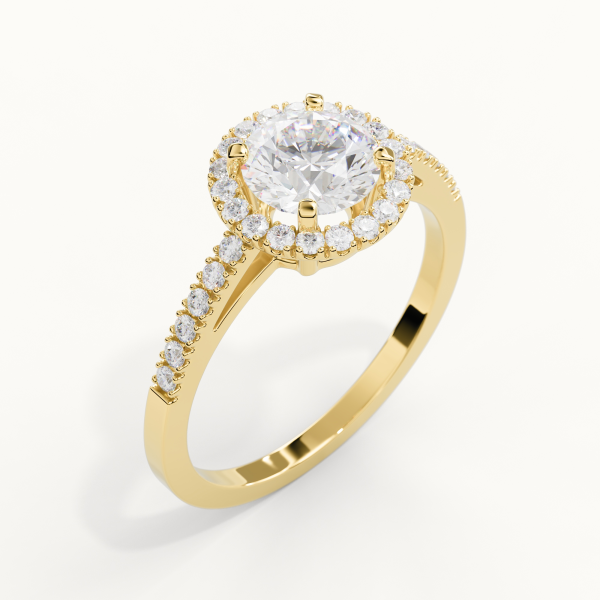 Solitare ring crafted in 18KT gold with a GIA-certified 0.50 CT natural center diamond, color D, clarity VVS1, surrounded by natural diamonds of color DEF and clarity VVS with a total weight of 0.50 CT. Ring weight approximately 6GR (depends on size). Personalized home delivery.