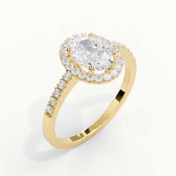 18KT gold solitaire ring set with a GIA-certified central Natural Oval-Cut Diamond of 0.50 CT, Color F, Clarity VS1, surrounded by Natural Diamonds, Color DEF, Clarity VS, totalling 0.30 CT. Total Natural Diamond Carat Weight: 0.80CT. Ring weight approximately 2.5GR (Depends on Size).