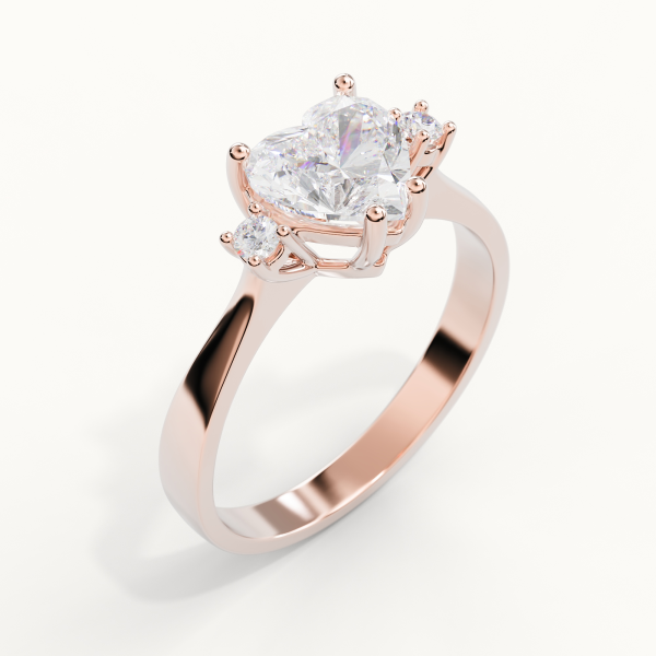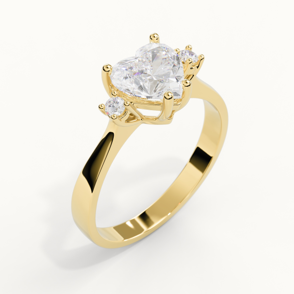 Solitaire ring crafted in 18KT gold, featuring a GIA-certified central Heart-cut Natural Diamond of 0.50 CT, Color F, Clarity VS1, surrounded by natural diamonds of Color DEF and Clarity VS, totaling 0.05 CT. Total carat weight of Natural Diamonds: 0.55 CT. Ring weight: approximately 3GR (varies by size).