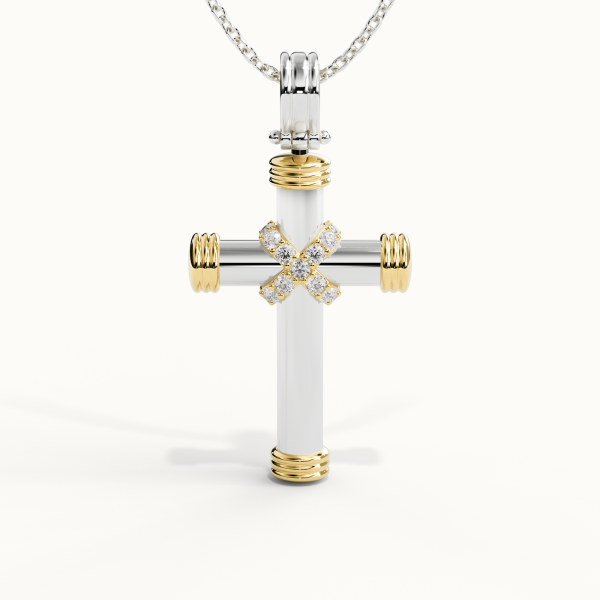 Pendant crafted in 18KT gold, set with Natural Diamonds, Color DEF, Clarity VS, totalling 0.15 CT. Total weight: approximately 6.00GR (45cm 18KT gold chain included).