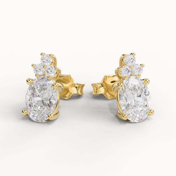 18kt yellow gold (750/1000) earrings, featuring certified GIA Natural Central Diamonds (0.30CT each) of Color D, Clarity VVS1, totaling 0.60CT. Surrounded by Natural Diamonds of Color DEF, Clarity VVS, totaling 0.50CT. Total weight approximately 8GR. Personalized home delivery.
