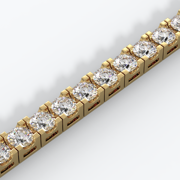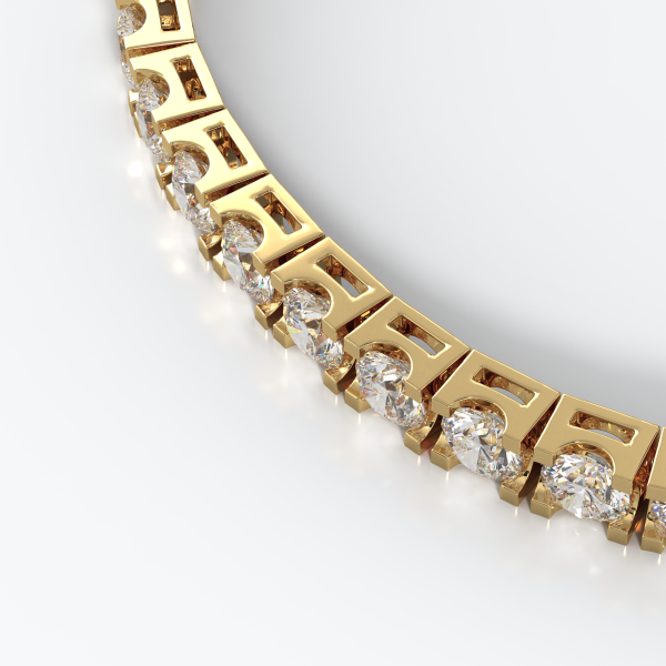 Classic tennis bracelet with square-cut details in 18KT gold (750/1000), adorned with Natural Diamonds, Color DEF, Clarity VVS. Total carat weight and gold weight vary according to length; 16CM: 13GR / 7.00CT APPROX 17CM: 14GR / 7.60CT APPROX 18CM: 15GR / 8.20CT APPROX 19CM: 16GR / 8.80CT APPROX 20CM: 17GR / 9.40CT APPROX 21CM: 18GR / 10.00CT APPROX