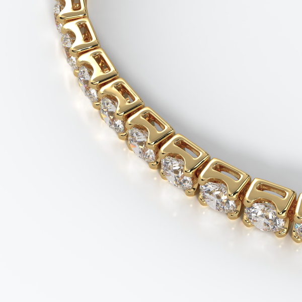 Classic tennis bracelet with square-cut details in 18KT gold (750/1000), adorned with Natural Diamonds, Color DEF, Clarity VVS. Total carat weight and gold weight vary according to length; 16CM: 11GR / 7.00CT APPROX 17CM: 12GR / 7.60CT APPROX 18CM: 13GR / 8.20CT APPROX 19CM: 14GR / 8.80CT APPROX 20CM: 15GR / 9.40CT APPROX 21CM: 16GR / 10.00CT APPROX Personalized home delivery.