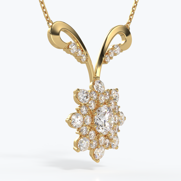 18kt gold pendant (750/1000) set with a GIA-certified 1.00CT Diamond, Color D, Clarity VVS1. Surrounded by Natural Diamonds, Color DEF, Clarity VVS, totalling 3.60CT. Total gold weight 20GR, with a 45CM chain ( Varies according to chain length ). Personalized home delivery.