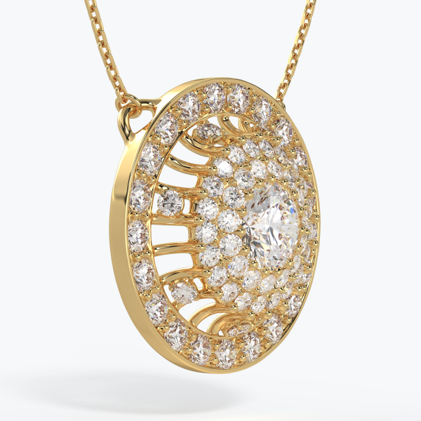 "Punto Luce" pendant crafted in 18kt gold (750/1000) with a GIA-certified 1.00CT diamond, color D, clarity VVS1, surrounded by natural diamonds of color DEF, clarity VVS, totaling 1.50CT. Total gold weight 5GR with a 45CM chain (may vary depending on chain length). Personalized home delivery.