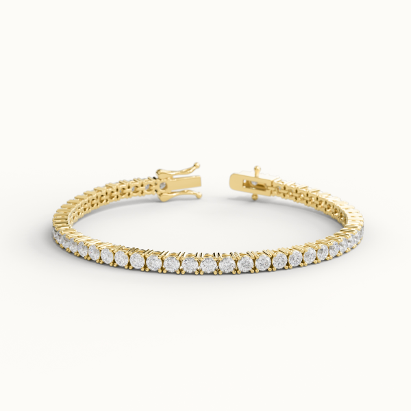 Classic Tennis Bracelet in 18KT (750/1000) gold, embellished with Natural Diamonds of Color DEF and Clarity VS. The total carat weight of the diamonds and the overall weight depend on the bracelet length and the diamond size selected through the options.