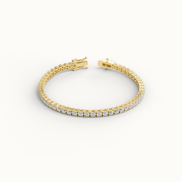 Classic Tennis Bracelet in 18KT (750/1000) gold, embellished with Natural Diamonds of Color DEF and Clarity VS. The total carat weight of the diamonds and the overall weight depend on the bracelet length and the diamond size selected through the options.