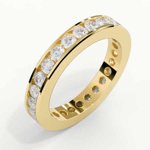 ETERNITY ring crafted in 18KT gold, adorned with Natural Diamonds of color DEF and clarity VS. The total carat weight of the diamonds and the overall weight depend on the ring size and the diamond size chosen through the options.
