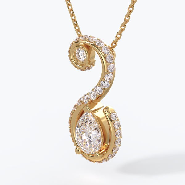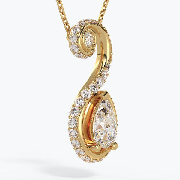 Pendant crafted in 18kt (750/1000) gold, featuring a GIA-certified Pear-cut Diamond of 0.50CT, Color D, Clarity VVS1. Surrounded by Natural Diamonds of Color DEF, Clarity VVS, totaling 1.20CT. Total diamond carat weight: 1.70CT Total gold weight: 15GR with 45CM chain (varies depending on chain length). Customized home delivery.