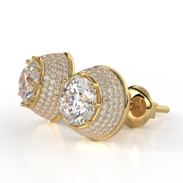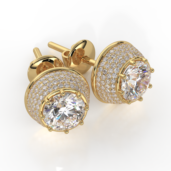 18kt yellow gold (750/1000) earrings, featuring certified GIA Natural Central Diamonds (0.50CT each) of Color D, Clarity VVS1, totaling 1.00CT. Surrounded by Natural Diamonds of Color DEF, Clarity VVS, totaling 0.60CT. Total weight approximately 6GR. Personalized home delivery.
