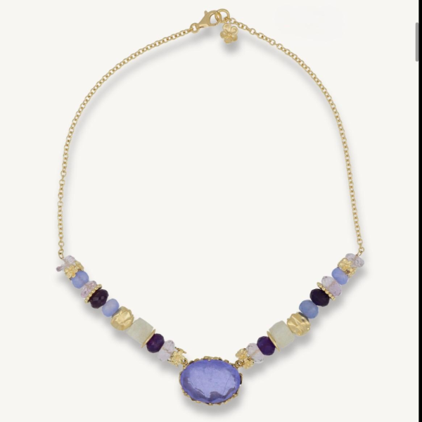 An 18ct gold-plated 925 silver necklace with natural stones and hydrothermal crystals available in various colors.