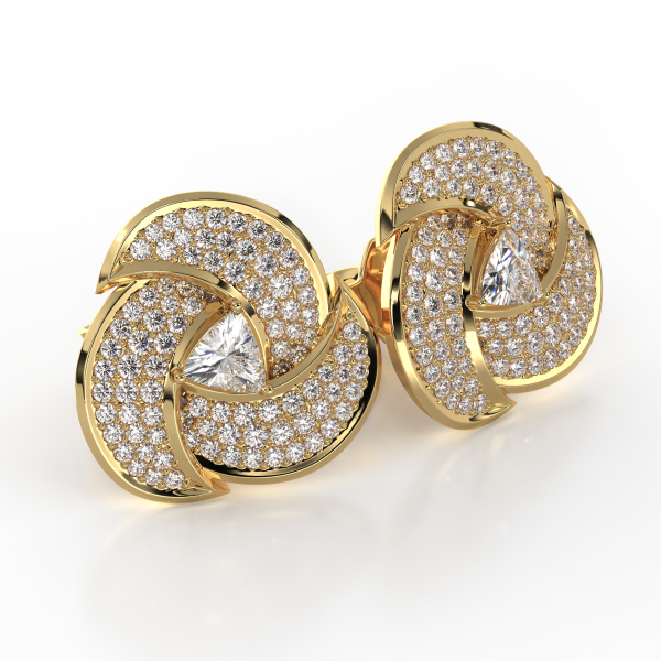Earrings crafted in 18kt (750/1000) gold, featuring central GIA-certified Trilliant-cut Natural Diamonds (0.30CT each) of Color D, Clarity VVS1, totaling 0.60CT. Surrounded by Natural Diamonds of Color DEF, Clarity VVS, totaling 2.80CT. Total carat weight of Natural Diamonds: 3.40CT Total weight: approximately 12GR. Customized home delivery.