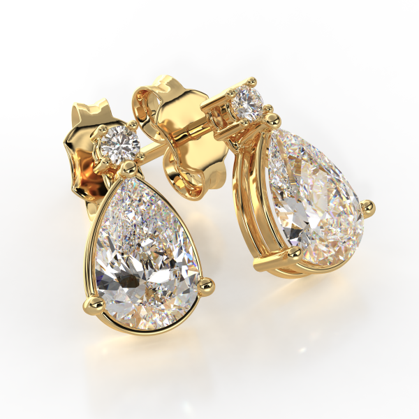 18kt gold earrings (750/1000), featuring central Natural Pear-Cut Diamonds certified GIA (0.50CT each) in Color D, Clarity VVS1, totalling 1.00CT. Surrounded by Natural Diamonds in Color DEF, Clarity VVS, totalling 0.10CT. Total weight approximately 6GR. Personalized home delivery.