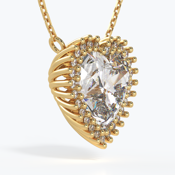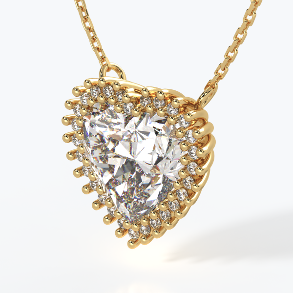 "Punto Luce" pendant crafted in 18kt gold (750/1000) with a GIA-certified 1.00CT Heart-cut Diamond, color D, clarity VVS1, surrounded by Natural Diamonds of color DEF and clarity VVS, totaling 0.50CT. Total gold weight approximately 8GR with a 45CM chain (may vary depending on chain length).