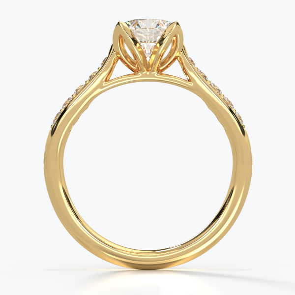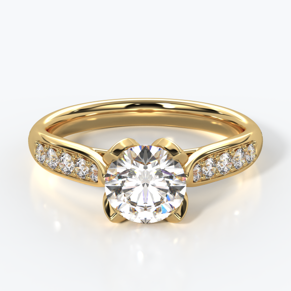 Solitare ring featuring a GIA-certified natural center diamond of 0.50 CT, color D, clarity VVS1, complemented by natural side diamonds of color DEF and clarity VVS. Center diamond carat weight: 0.50 CT Total side diamonds carat weight: 1.50 CT Crafted in 18KT gold (750/1000). Gold weight: Approximately 5G (varies by size). Personalized home delivery.