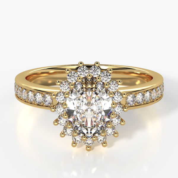 Halo ring crafted in 18KT gold with a GIA-certified 1.00 CT Oval-cut natural center diamond, color D, clarity VVS1, surrounded by natural diamonds of color DEF and clarity VVS with a total weight of 0.90 CT. Ring weight approximately 7GR (depends on size).