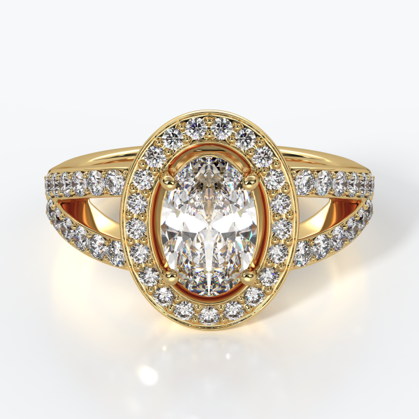 18KT gold solitaire ring set with a GIA-certified central Natural Oval-Cut Diamond of 1.00 CT, Color D, Clarity VVS1: Surrounded by Natural Diamonds, Color DEF, Clarity VVS, totalling 2.00 CT. Total Natural Diamond Carat Weight: 3.00CT, Ring weight approximately 8G (Depends on Size).