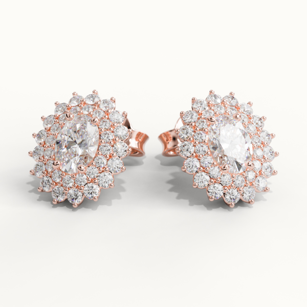 Earrings crafted in 18KT gold, featuring two GIA Certified Center Diamonds of 0.50CT each, Color F, Clarity VS1. Surrounded by 2.30CT of Natural Diamonds, Color DEF, Clarity VS. Total Carat Weight of Natural Diamonds: 3.30CT Total Weight: Approximately 8.00GR.