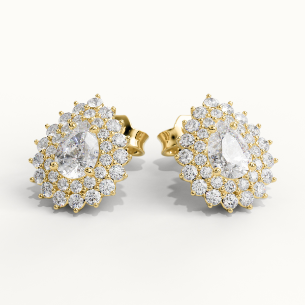 Earrings crafted in 18KT gold, featuring two GIA Certified Center Diamonds of 0.50CT each, Color F, Clarity VS1. Surrounded by 1.15CT of Natural Diamonds, Color DEF, Clarity VS. Total Carat Weight of Natural Diamonds: 2.15CT Total Weight: Approximately 8.00GR.
