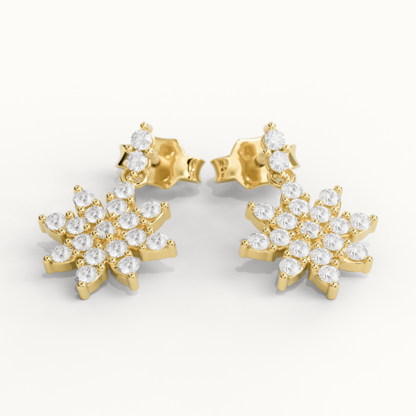 18kt yellow gold (750/1000) earrings, featuring certified GIA Natural Central Diamonds (0.30CT each) of Color D, Clarity VVS1, totaling 0.60CT. Surrounded by Natural Diamonds of Color DEF, Clarity VVS, totaling 0.50CT. Total weight approximately 8GR. Personalized home delivery.
