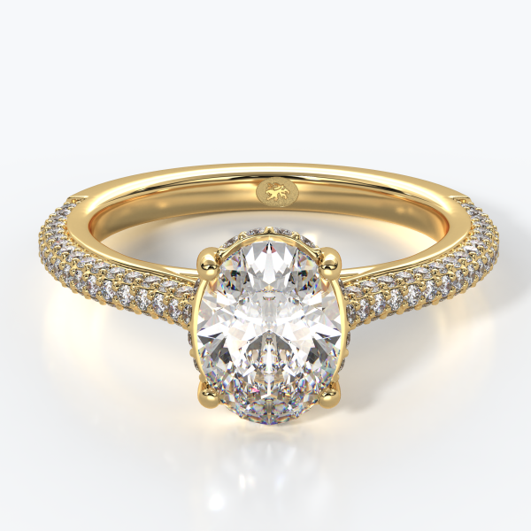 Solitare ring crafted in 18KT gold with a GIA-certified Oval-cut natural center diamond of 1.00 CT, color D, clarity VVS1, surrounded by natural diamonds of color DEF and clarity VVS with a total weight of 1.20 CT. Ring weight approximately 7GR (depends on size).