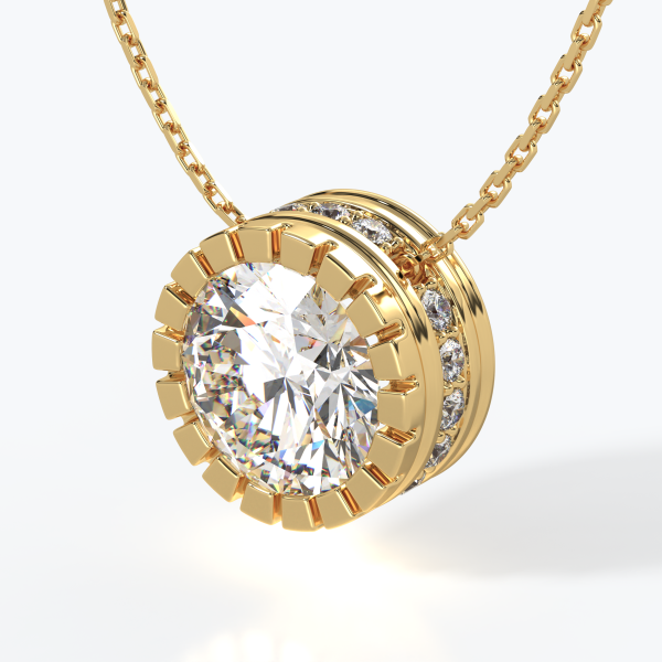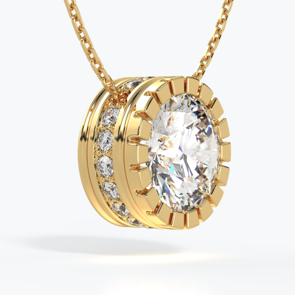 "Punto Luce" pendant crafted in 18kt gold (750/1000) with a GIA-certified 1.00CT diamond, color D, clarity VVS1, surrounded by natural diamonds of color DEF, clarity VVS, totaling 1.50CT. Total gold weight 5GR with a 45CM chain (may vary depending on chain length). Personalized home delivery.