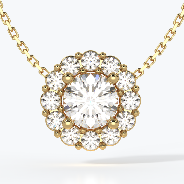 "Punto Luce" pendant crafted in 18kt gold (750/1000) with a GIA-certified 1.00CT diamond, color D, clarity VVS1, surrounded by natural diamonds of color DEF, clarity VVS, totaling 1.50CT. Total gold weight 5GR with a 45CM chain (may vary depending on chain length). Personalized home delivery.
