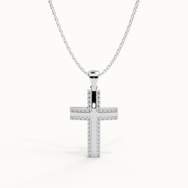 Pendant crafted in 18KT gold, set with Natural Diamonds, Color DEF, Clarity VS, totalling 0.60CT. Total weight: approximately 3.50GR ( 45cm 18KT gold chain included ).