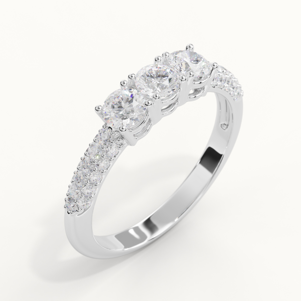 Trilogy ring crafted in 18KT gold with natural diamonds of color DEF and clarity VS, total weight 0.30 CT. Total carat weight of natural diamonds: 0.30 CT. Ring weight approximately 4.5GR (Depends on the Size).