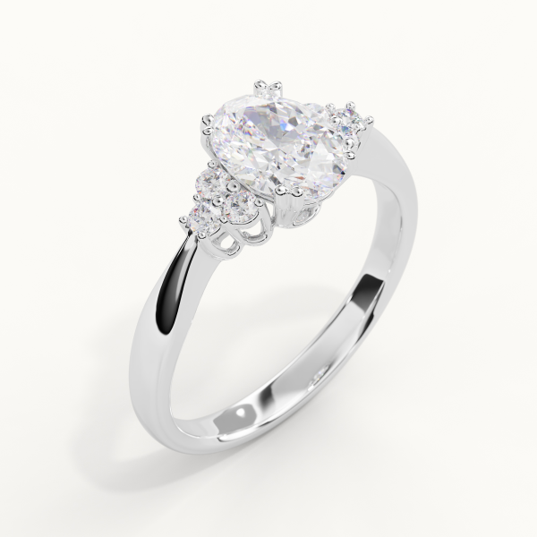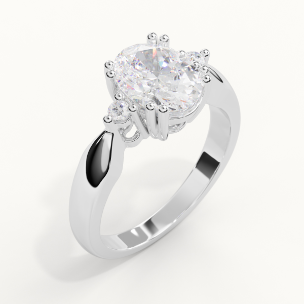 Solitaire ring crafted in 18KT gold, featuring a GIA-certified central Oval-cut Natural Diamond of 0.50 CT, Color F, Clarity VS1, surrounded by natural diamonds of Color DEF and Clarity VS, totaling 0.06 CT. Total carat weight of Natural Diamonds: 0.56 CT. Ring weight: approximately 3GR (varies by size).