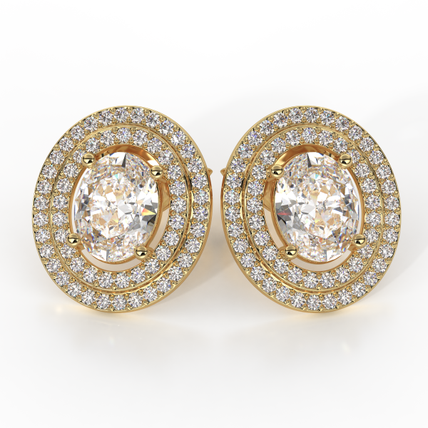 Earrings crafted in 18kt (750/1000) gold, featuring central GIA-certified Oval-cut Natural Diamonds (0.50CT each) of Color D, Clarity VVS1, totaling 1.00CT. Surrounded by Natural Diamonds of Color DEF, Clarity VVS, totaling 1.20CT. Total carat weight of Natural Diamonds: 2.20CT Total weight: approximately 15GR. Customized home delivery.