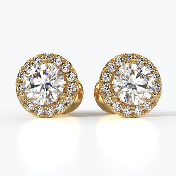 18kt gold earrings (750/1000), featuring central GIA-certified Natural Diamonds (0.50CT each) in Color D, Clarity VVS1, totalling 1.00CT. Surrounded by Natural Diamonds, Color DEF, Clarity VVS, totalling 0.60CT. Total weight approximately 6GR. Personalized home delivery.