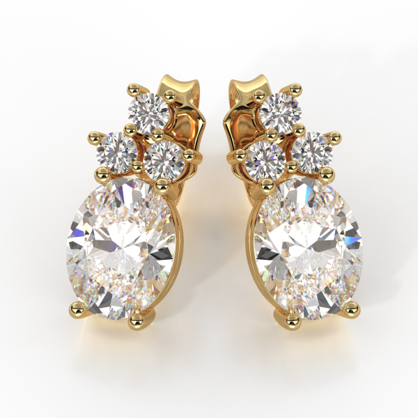 Earrings in 18kt (750/1000) gold, featuring GIA-certified natural oval-cut central diamonds (0.50CT each) of Color D, VVS1 clarity, totaling 1.00CT. Accented by natural diamonds of Color DEF, VVS clarity, totaling 0.60CT. Total weight approximately 6 GR. Personalized home delivery.