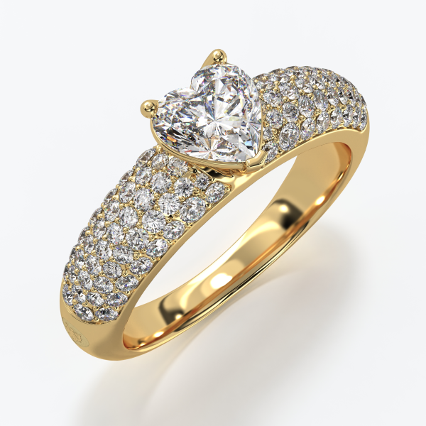 18KT gold solitaire ring set with a GIA-certified central Natural Heart-Cut Diamond of 1.00 CT, Color D, Clarity VVS1; Surrounded by Natural Diamonds, Color DEF, Clarity VVS, totalling 1.00 CT. Total Natural Diamond Carat Weight: 2.00CT Ring weight approximately 8GR (Depends on Size).