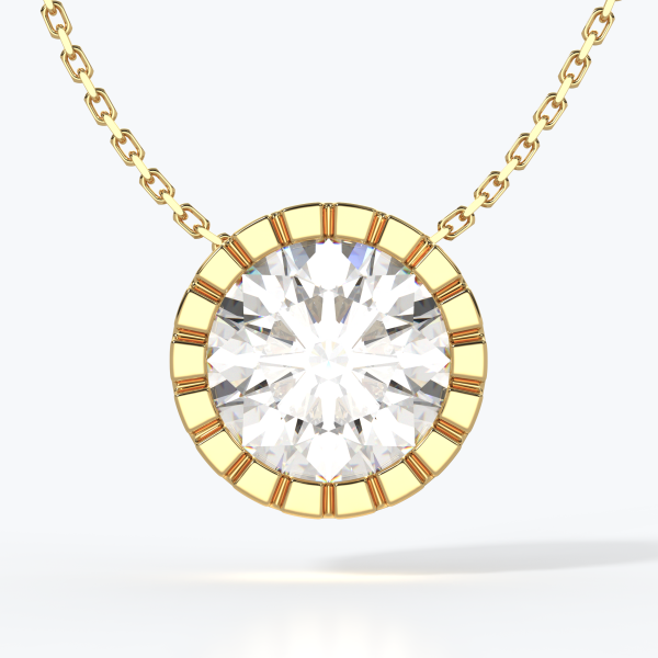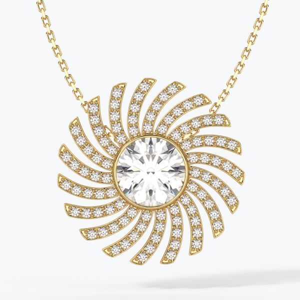 "Punto Luce" pendant crafted in 18kt gold (750/1000) with a GIA-certified 1.00CT diamond, color D, clarity VVS1, surrounded by natural diamonds of color DEF, clarity VVS, totaling 1.50CT. Total gold weight 5GR with a 45CM chain (may vary depending on chain length). Personalized home delivery.
