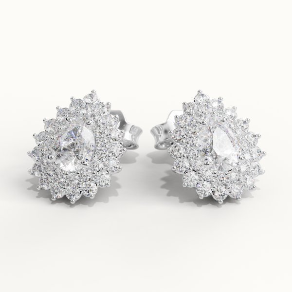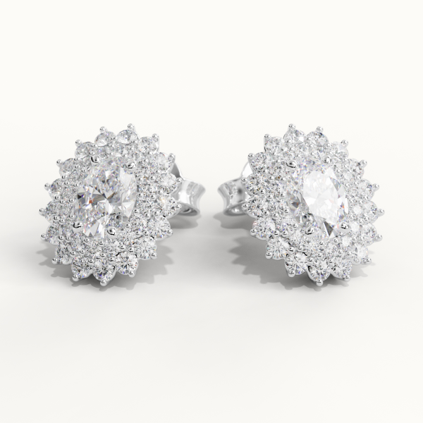 Earrings crafted in 18KT gold, featuring two GIA Certified Center Diamonds of 0.50CT each, Color F, Clarity VS1. Surrounded by 1.05CT of Natural Diamonds, Color DEF, Clarity VS. Total Carat Weight of Natural Diamonds: 2.05CT Total Weight: Approximately 8.00GR.