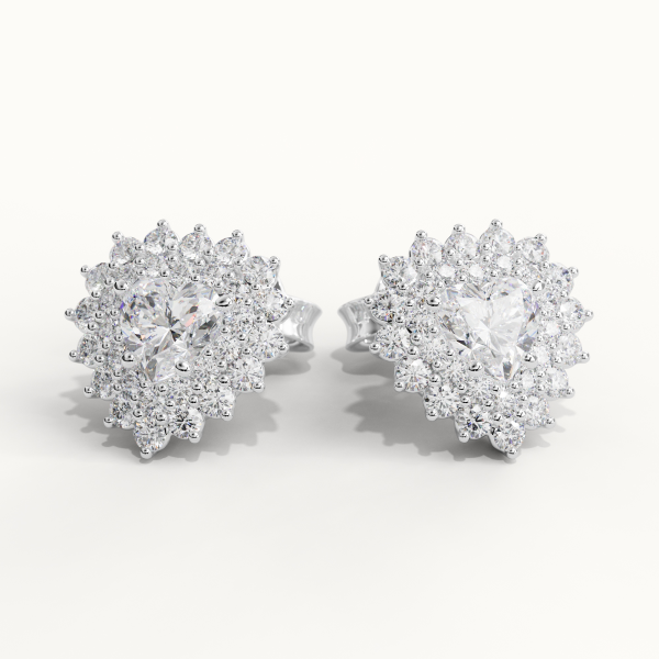 Earrings crafted in 18KT gold, featuring two GIA Certified Center Diamonds of 0.50CT each, Color F, Clarity VS1. Surrounded by 2.30CT of Natural Diamonds, Color DEF, Clarity VS. Total Carat Weight of Natural Diamonds: 3.30CT Total Weight: Approximately 8.00GR.