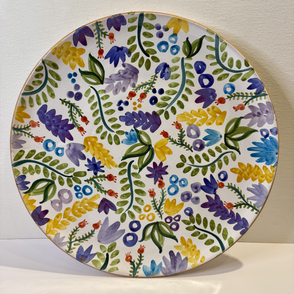 直径38厘米的光滑平板,完全手工制作,带有自由手绘装饰。独一无二的产品。